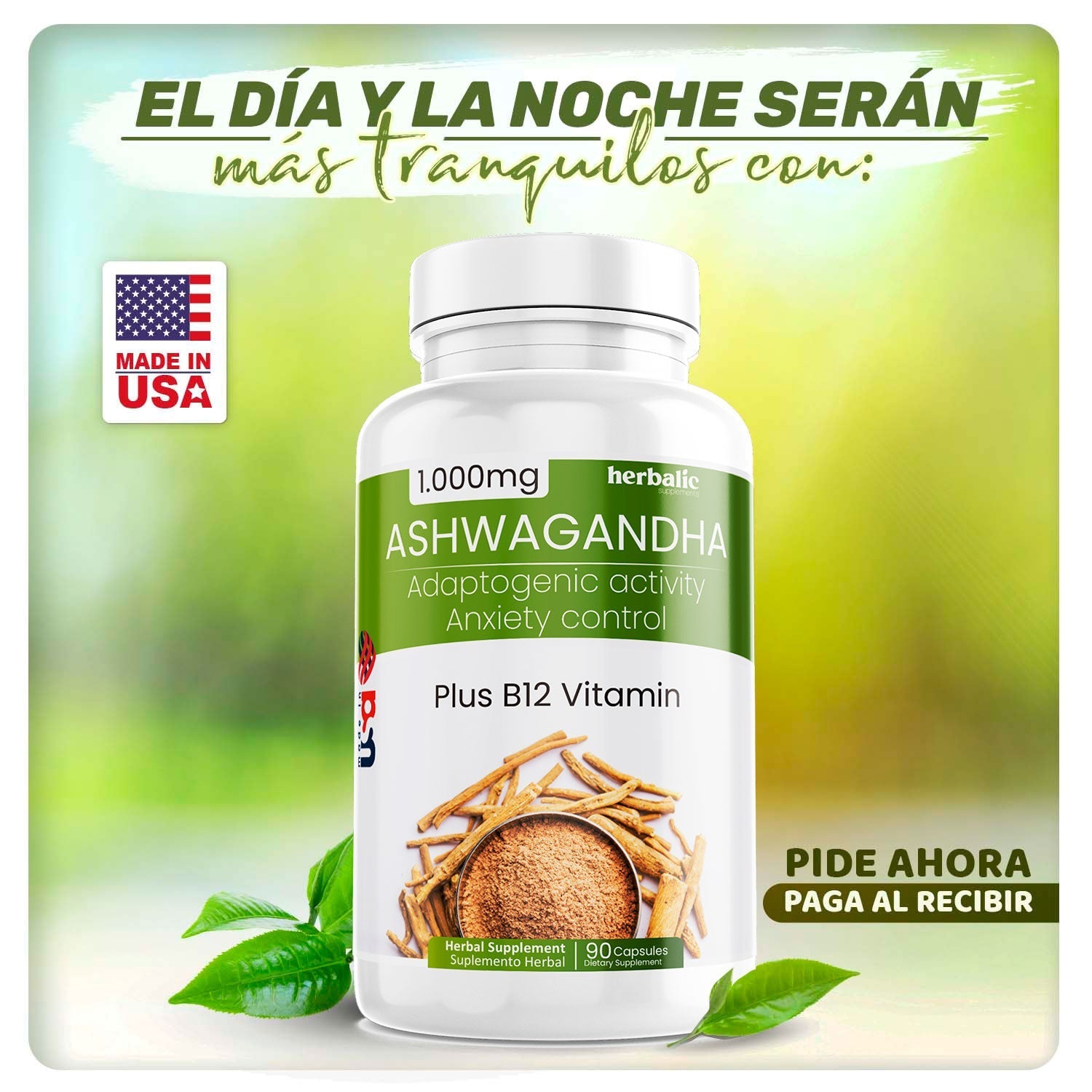 Ashwagandha 1000 mg, 90 Cápsulas - ¡Despídete Del Estrés y Mejora Tu Bienestar Para Una Vida Plena y Equilibrada!